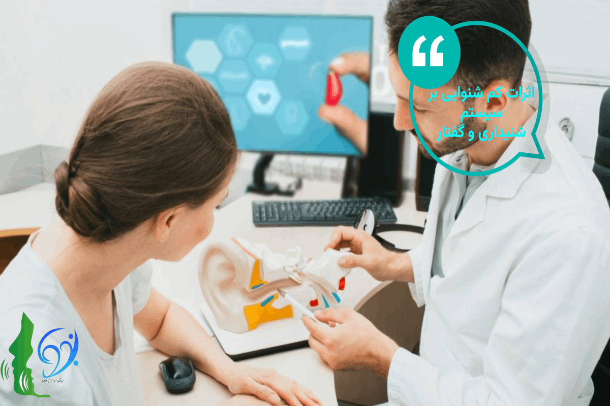 حتی کمشنوایی ملایم میتواند باعث حذف صداهای کوتاه، اختلال در ریتم و آهنگ گفتار، مشکلات دستور زبان و کاهش درک گفتار شود. درمان به موقع با سمعک و آموزش شنوایی اهمیت بالایی دارد.